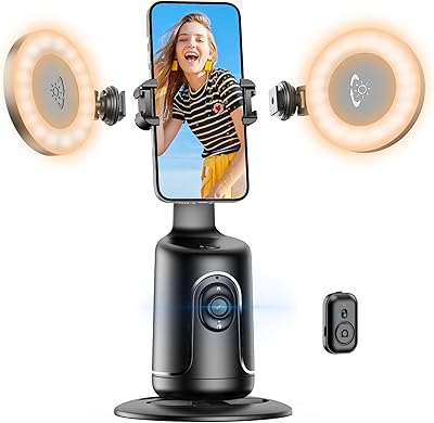 Auto Face Tracking Tripod with 2 Selfie Ring Light, 360 Rotation Face Body Phone Holder Smart Shooting Camera Mount with Remote, Rechargeable Smart Shooting Holder for Vlog, Streaming, Video, Tiktok